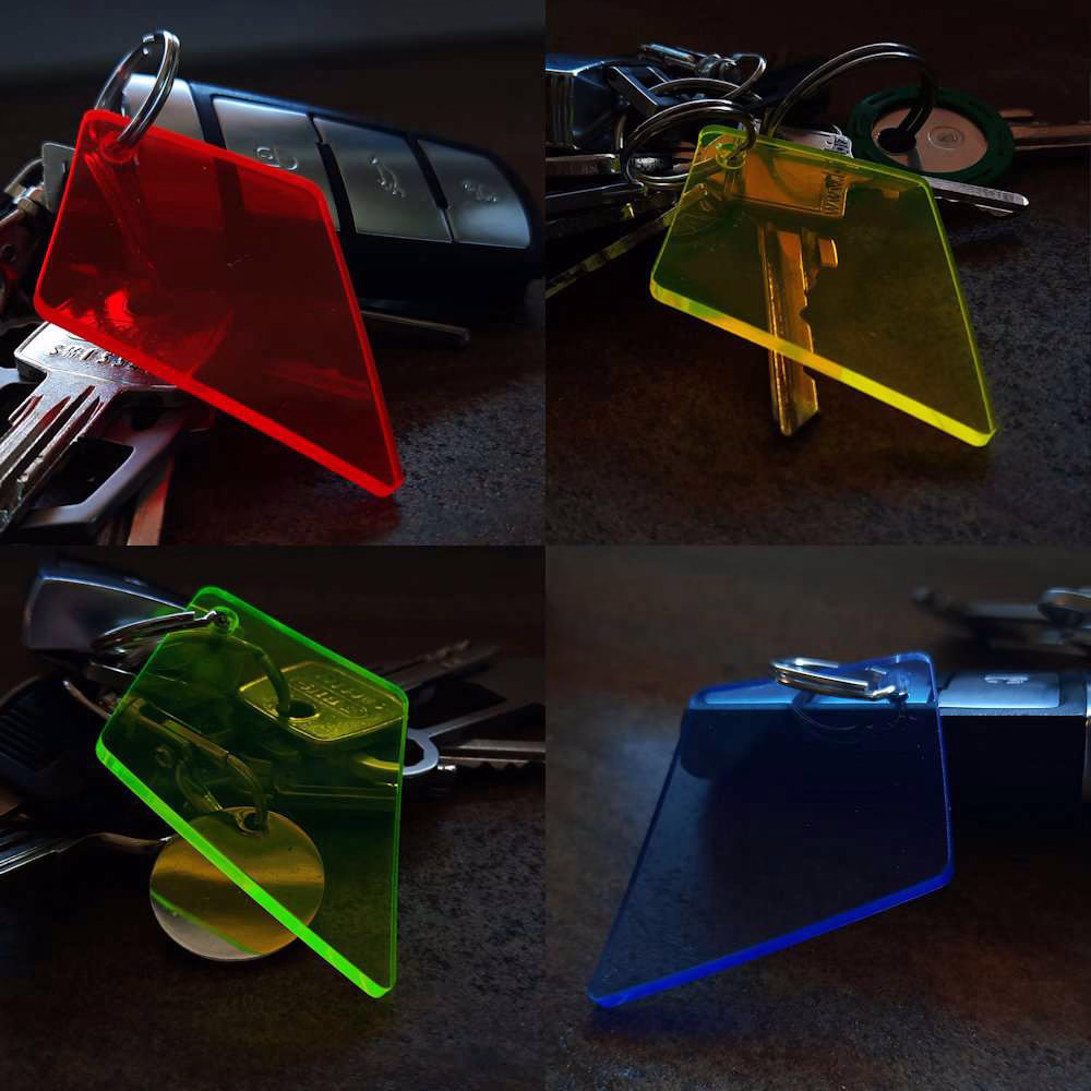 Sie können zur Kennzeichnung von Schlüsseln, Reise- oder Schultaschen – aber ebenso gut auch als Ohrringe verwendet werden. Die Drachen haben großzügig abgerundete Ecken – also keine Kanten oder Haken, die sich in der Tasche verhaken könnten. Wir bieten die Drachen in vier verschiedenen Farben an, so dass Du Deine ganze Familie damit versorgen kannst. Kunterbunt – und doch gehören sie alle zusammen. Die Drachen sind (ohne Ring) 6,4cm hoch, 4,8cm breit und 0,3cm dick. Die passenden Schlüsselringe gehören aber natürlich dazu. Für mehr Infos, halte … und das wirst Du bekommen: Drachen in Schutzfolie