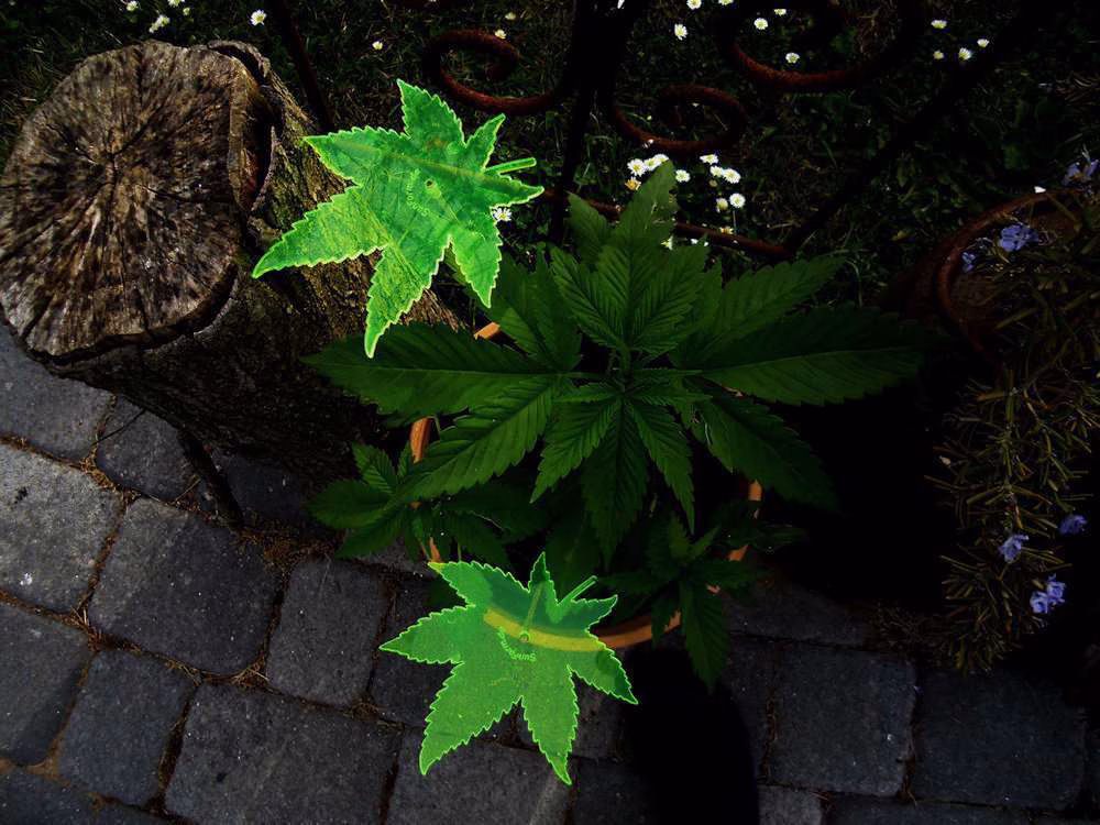 das leuchtende Cannabisblatt